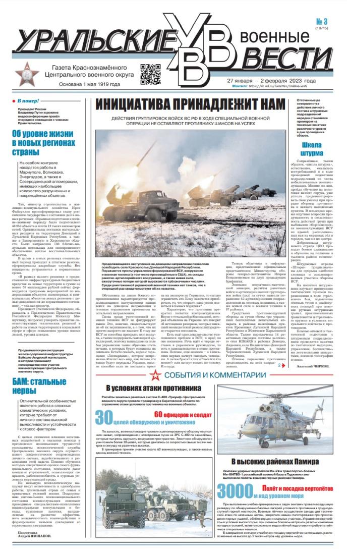 - Ural Military News Newspaper of the Ural (Red Banner) Military District founded in Ekaterinburg in May 1919. Covers life in the district, relationship between the military and civilian authorities, reports from daily routine of the troops.
