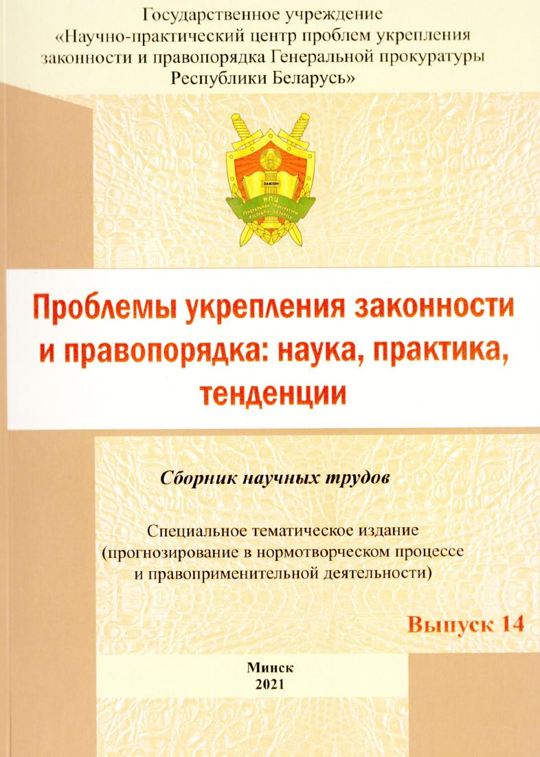 Problemy ukrepleniia zakonnosti i pravoporiadka: nauka, praktika, tendentsii : sbornik nauchnykh trudov : Vypusk 14 : spetsial'noe tematicheskoe izdanie (prognozirovanie v normotvorcheskom protsesse i pravoprimenitel'noi deiatel'nosti)