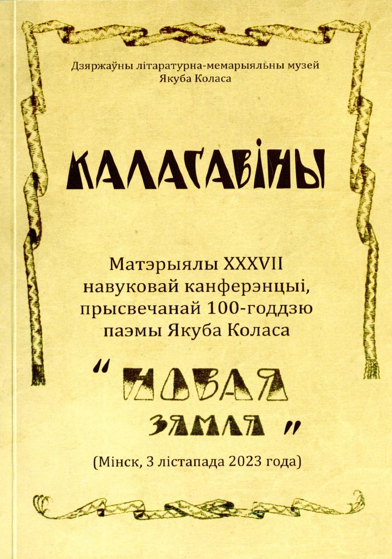 Kalasaviny : materyialy XXXVII navukovai kanferentsyi, prysvechanai 100-hoddziu paemy IAkuba Kolasa "Novaia ziamlia" (Minsk, 3 listapada 2023 hoda) Kolosoviny : Proceedings of the 37th Scientific Conference Dedicated to the 100th Anniversary of the Poem "New Land" by Yakub Kolas (Minsk, November 3, 2023)