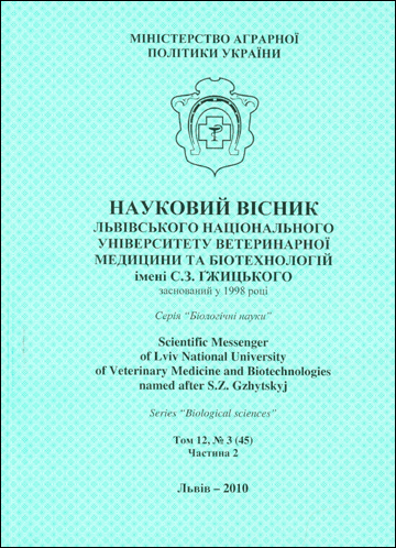 Naukovyi visnyk L'vivs'koho natsional'noho universytetu veterynarnoi medytsyny ta biotekhnolohii imeni S. Z. Hzhyts'koho = Scientific Messenger of Lviv National University of Veterinary Medicine and Biotechnologies named after S.Z. Gzhitskyj : Том 12, № 3 (45) : Частина 2 : Серія "Біологічні науки"